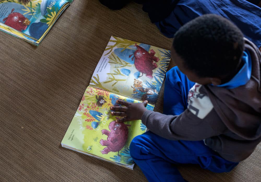 Children enjoying donated books at Msuzi Primary CCAP Day Secondary School in Lundazi District